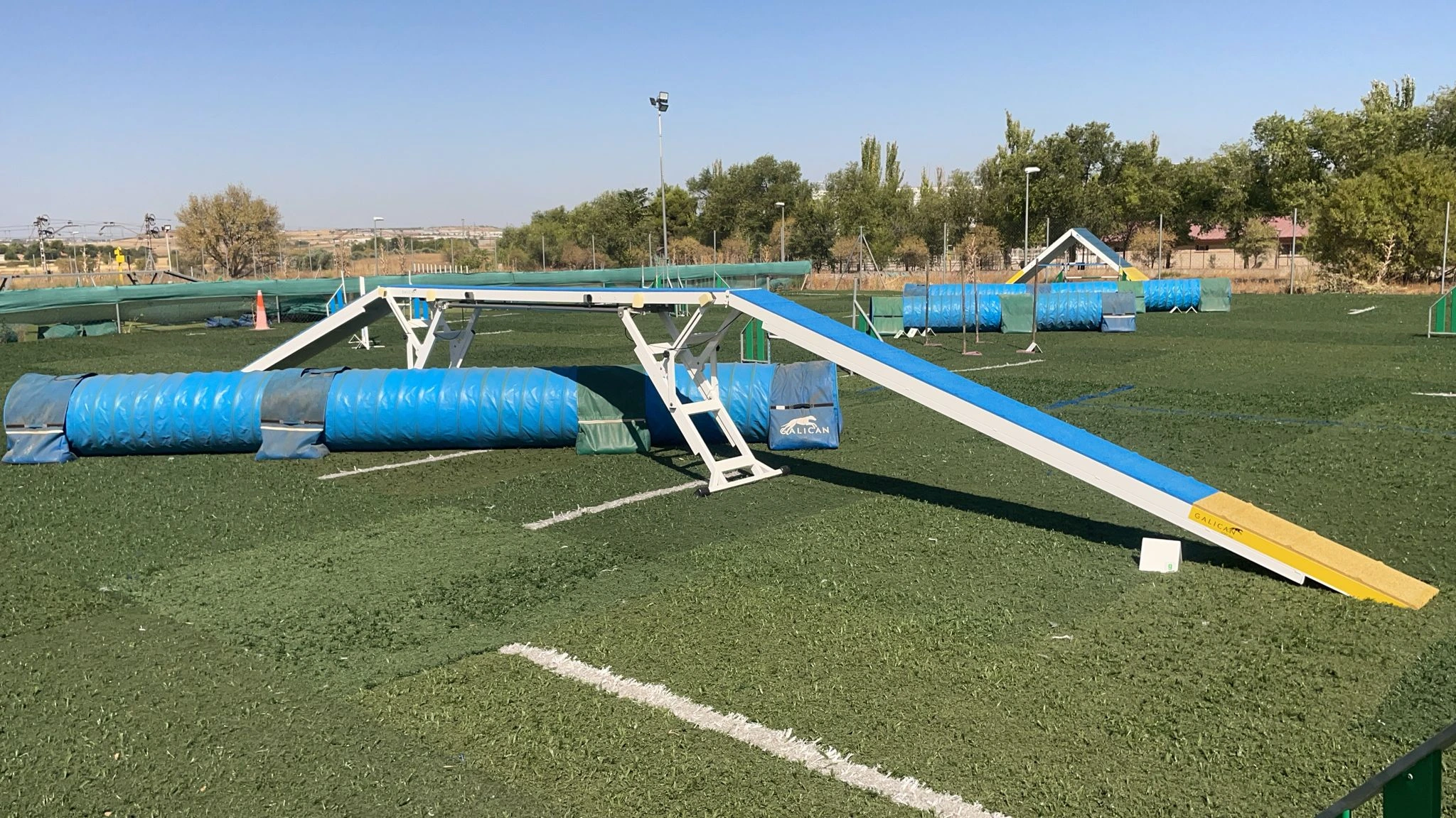 Contamos con dos pistas de césped artificial fibrilado equipadas con obstáculos Galican Soft 2.0, diseñados para máxima seguridad y comodidad.